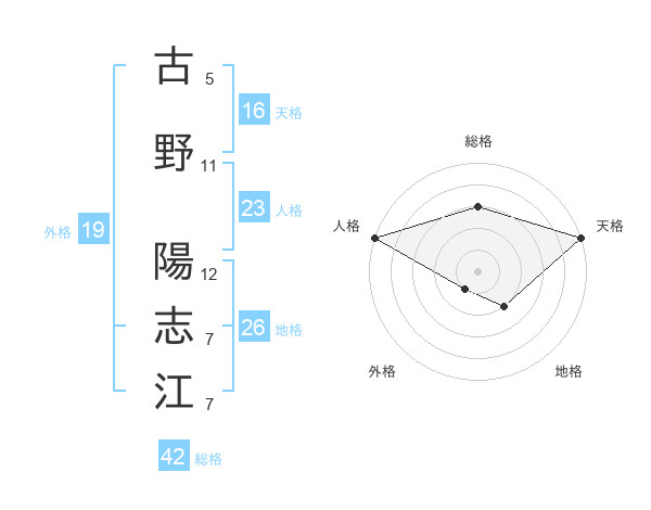 古野 陽志江さんを姓名の画数から五運を鑑定