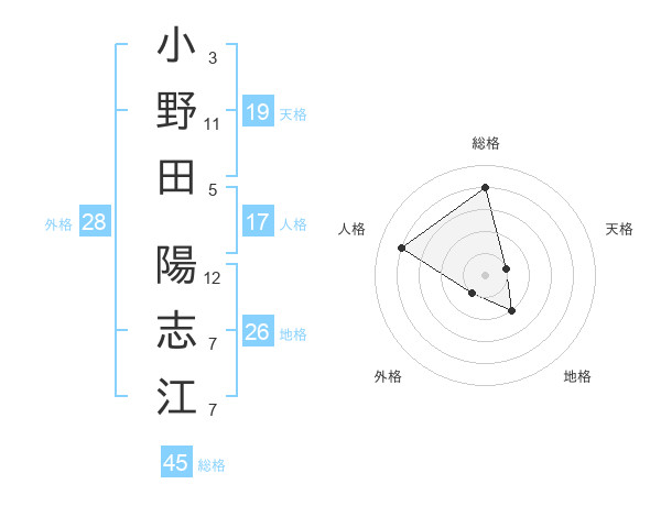 小野田 陽志江さんを姓名の画数から五運を鑑定