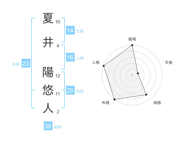 夏井 陽悠人さんを姓名の画数から五運を鑑定