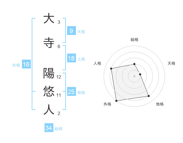 大寺 陽悠人さんを姓名の画数から五運を鑑定