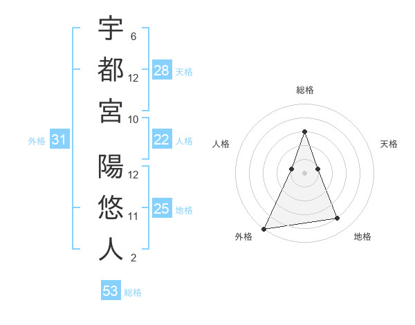 宇都宮 陽悠人さんを姓名の画数から五運を鑑定