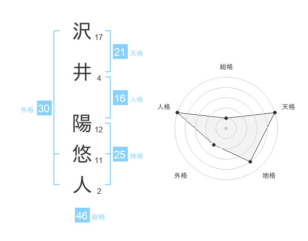 沢井 陽悠人さんの天格は21画の5点!