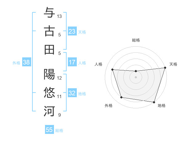 与古田 陽悠河さんの天格は23画の5点!