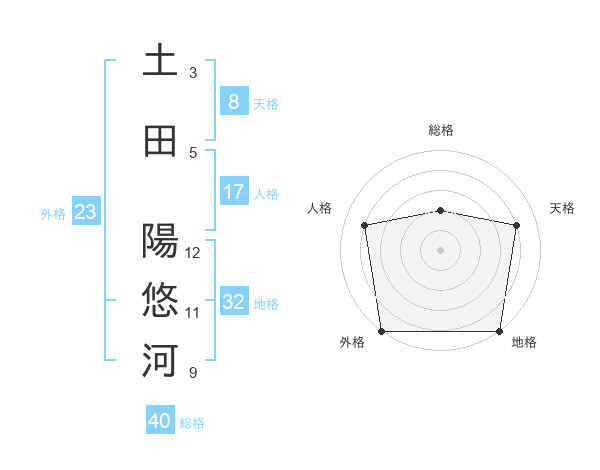 土田 陽悠河さんを姓名の画数から五運を鑑定