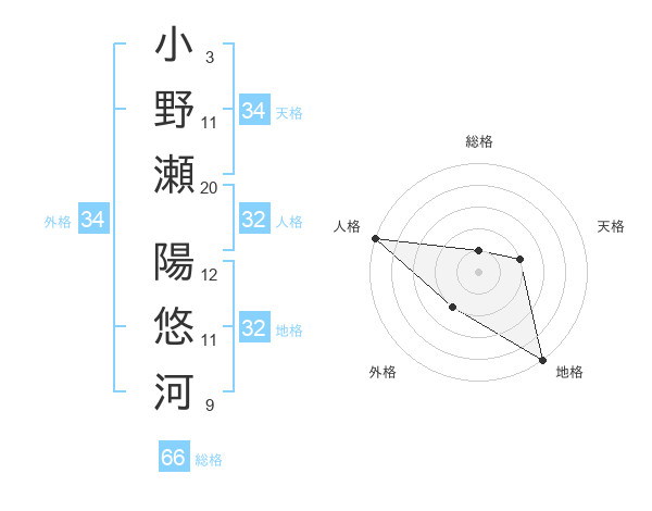 小野瀬 陽悠河さんの天格は34画の2点!
