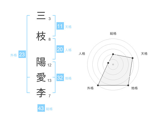 三枝 陽愛李さんを姓名の画数から五運を鑑定