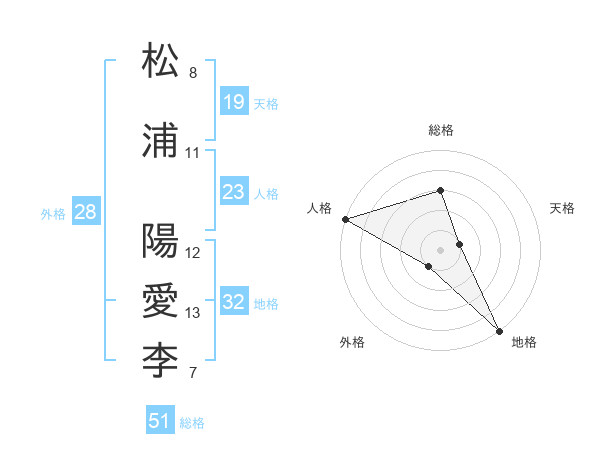 松浦 陽愛李さんを姓名の画数から五運を鑑定