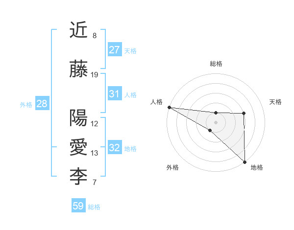 近藤 陽愛李さんを姓名の画数から五運を鑑定