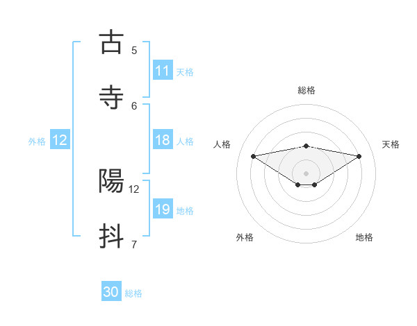 古寺 陽抖さんの総格は30画の2点!