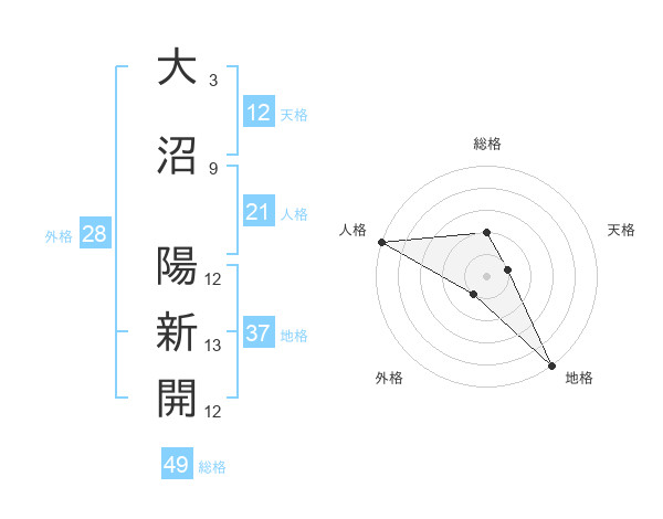 大沼 陽新開さんの総格は49画の2点