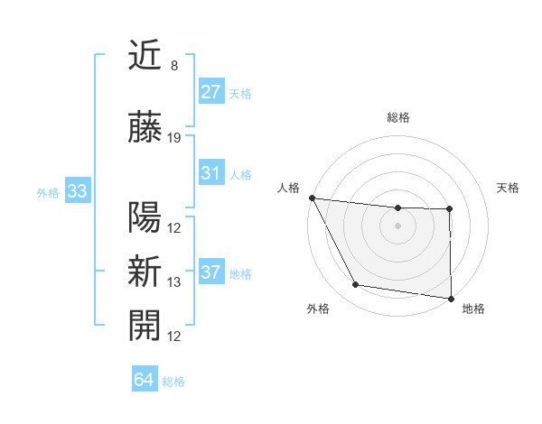 近藤 陽新開さんを姓名の画数から五運を鑑定