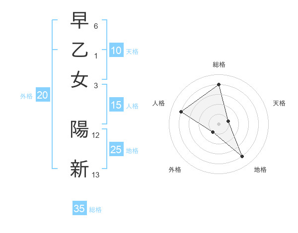早乙女 陽新さんを姓名の画数から五運を鑑定