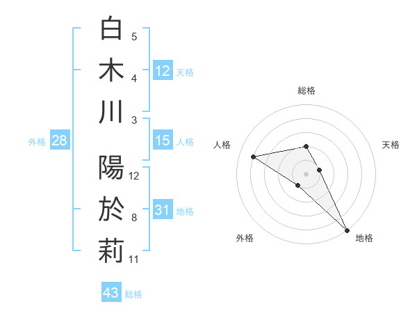 白木川 陽於莉さんの地格は31画の5点!