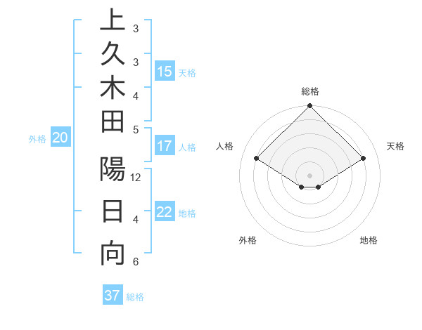 上久木田 陽日向さんの総格は37画の5点!