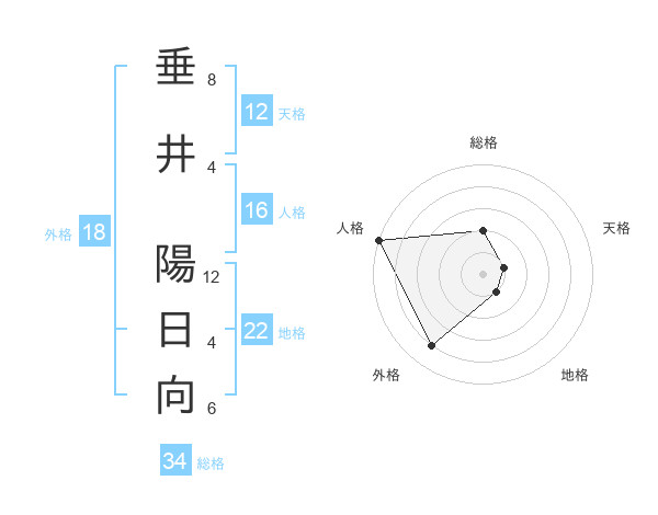 垂井 陽日向さんの総格は34画の2点!