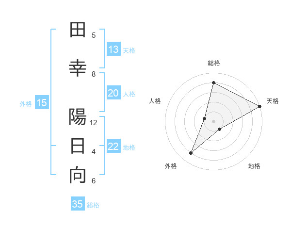 田幸 陽日向さんを姓名の画数から五運を鑑定