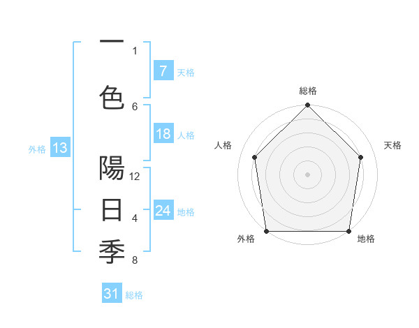 一色 陽日季さんを姓名の画数から五運を鑑定
