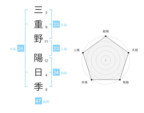 三重野 陽日季さんの総格は47画の5点