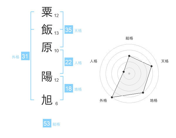 粟飯原 陽旭さんの外格は31画の5点!