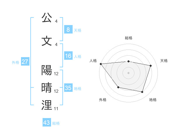 公文 陽晴浬さんを姓名の画数から五運を鑑定