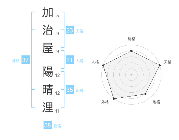 加治屋 陽晴浬さんの天格は23画の5点!