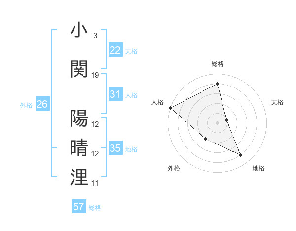 小関 陽晴浬さんを姓名の画数から五運を鑑定