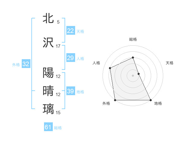 北沢 陽晴璃さんを姓名の画数から五運を鑑定