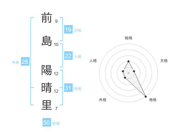 前島 陽晴里さんの総格は50画の2点!