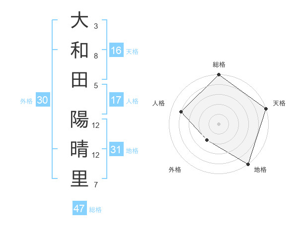 大和田 陽晴里さんを姓名の画数から五運を鑑定