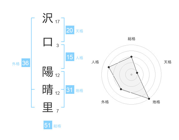 沢口 陽晴里さんの天格は20画の1点!