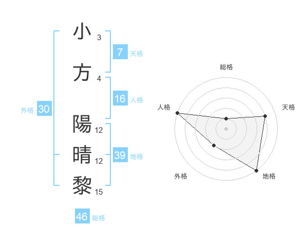 小方 陽晴黎さんを姓名の画数から五運を鑑定