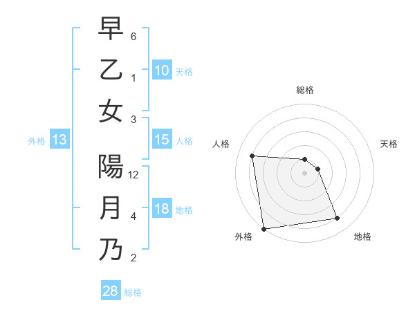 早乙女 陽月乃さんの外格は13画の5点!