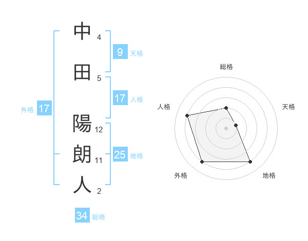 中田 陽朗人さんを姓名の画数から五運を鑑定