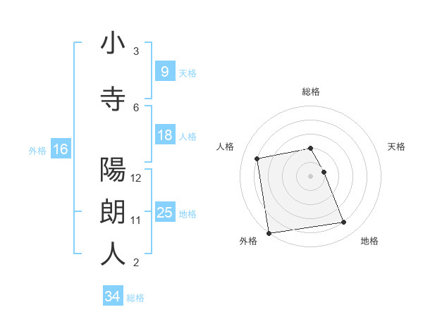 小寺 陽朗人さんの総格は34画の2点!