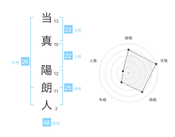 当真 陽朗人さんを姓名の画数から五運を鑑定