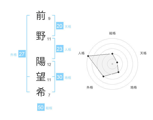前野 陽望希さんを姓名の画数から五運を鑑定