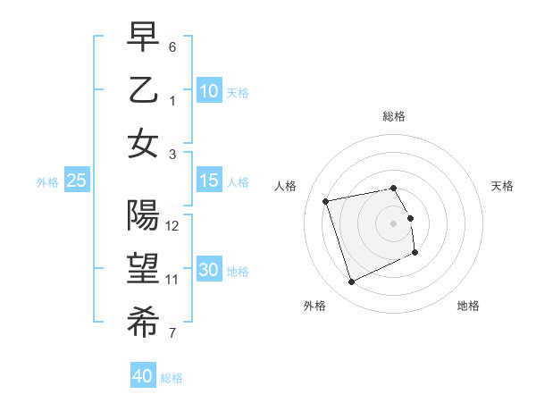 早乙女 陽望希さんを姓名の画数から五運を鑑定
