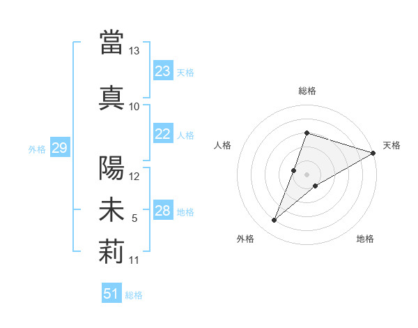 當真 陽未莉さんの天格は23画の5点!