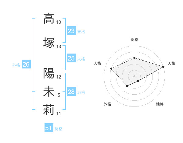 高塚 陽未莉さんの総格は51画の3点!