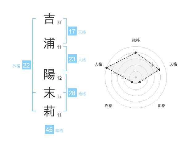 吉浦 陽末莉さんを姓名の画数から五運を鑑定