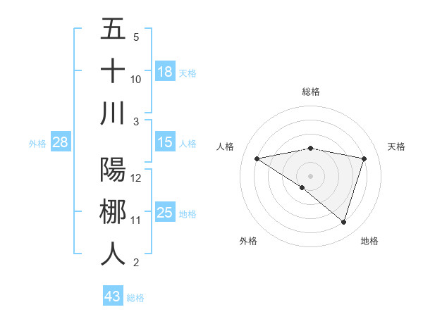 五十川 陽梛人さんを姓名の画数から五運を鑑定