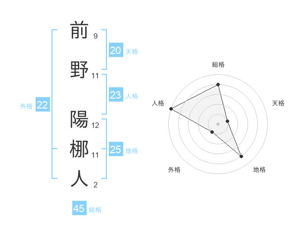 前野 陽梛人さんを姓名の画数から五運を鑑定