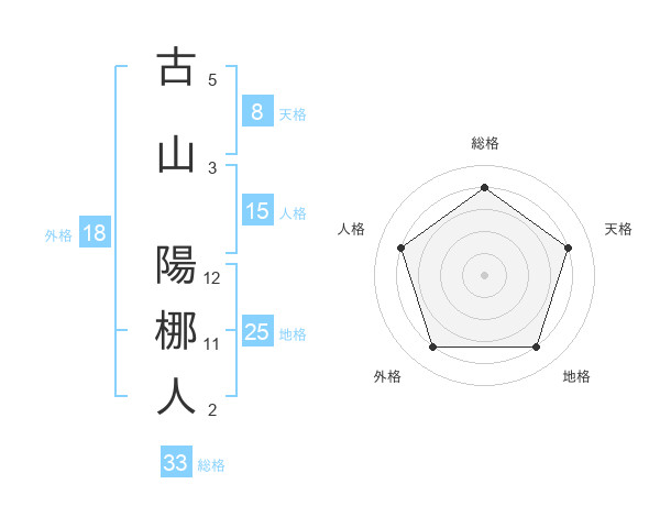 古山 陽梛人さんを姓名の画数から五運を鑑定