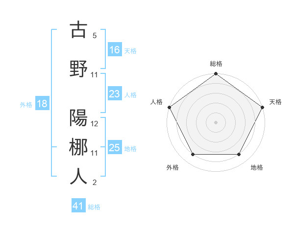 古野 陽梛人さんを姓名の画数から五運を鑑定
