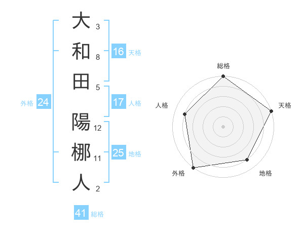 大和田 陽梛人さんを姓名の画数から五運を鑑定