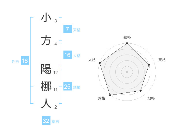 小方 陽梛人さんの外格は16画の5点!