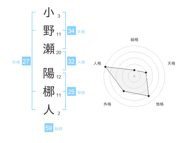 小野瀬 陽梛人さんの地格は25画の4点!