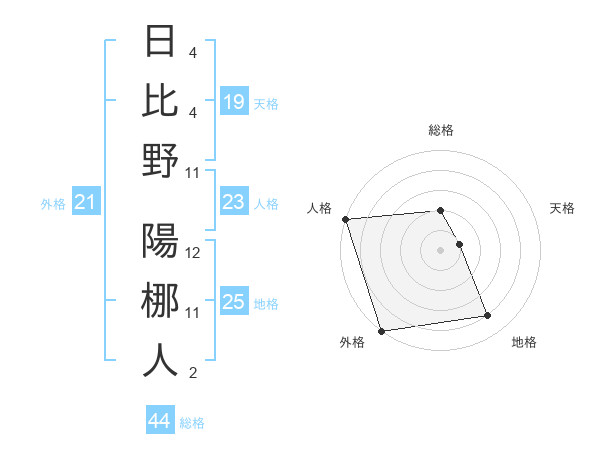 日比野 陽梛人さんを姓名の画数から五運を鑑定