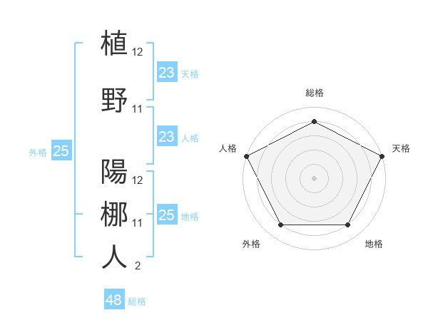 植野 陽梛人さんを姓名の画数から五運を鑑定