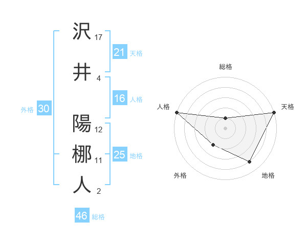 沢井 陽梛人さんを姓名の画数から五運を鑑定